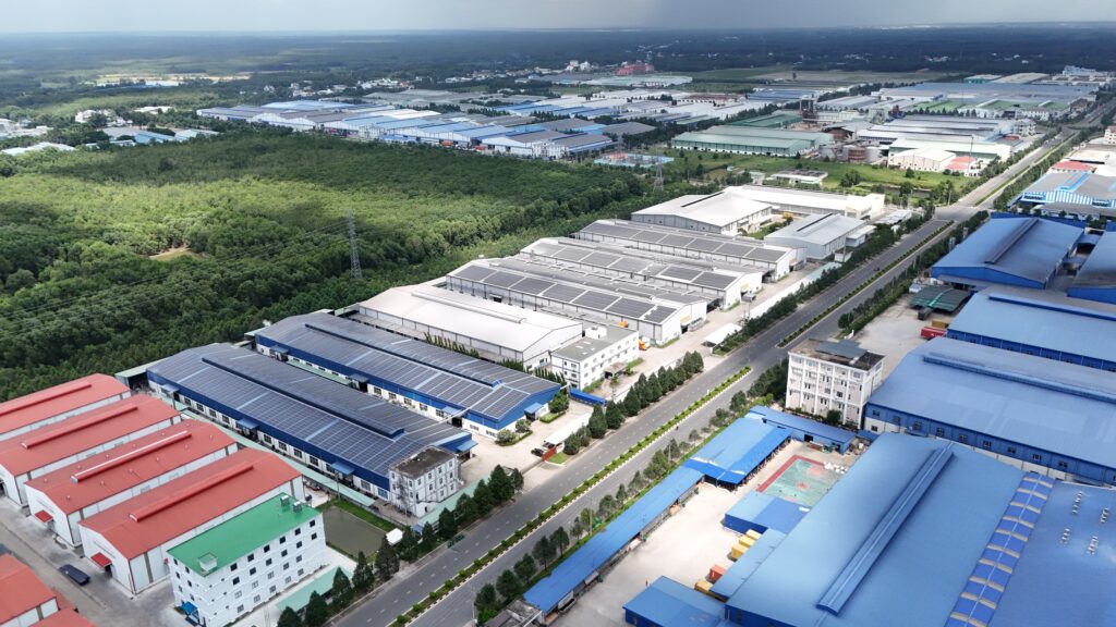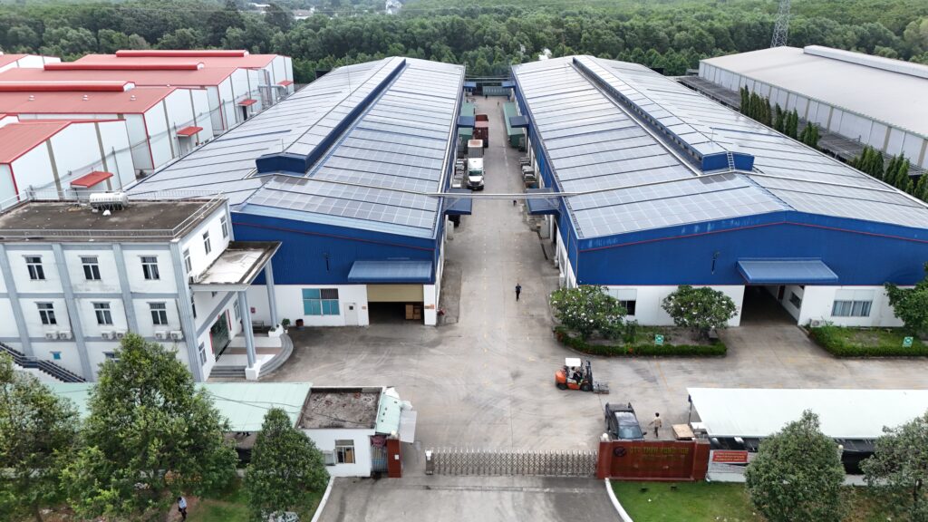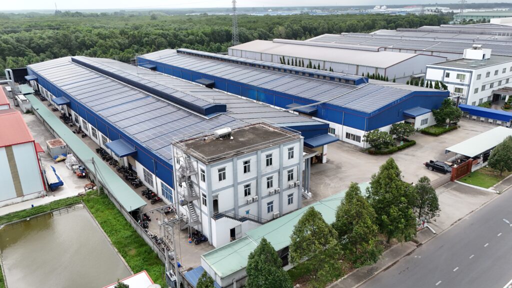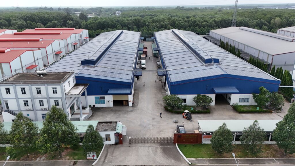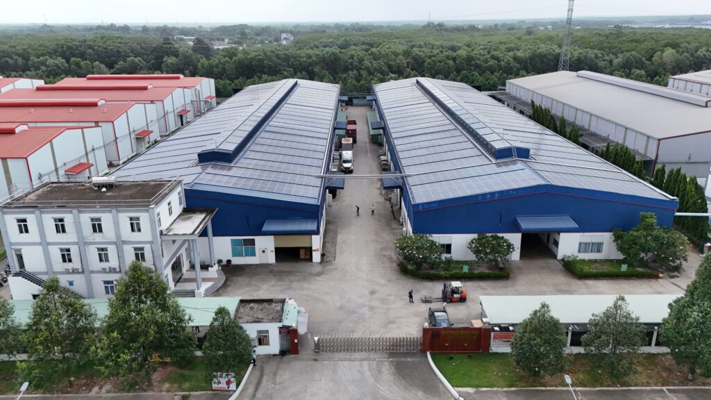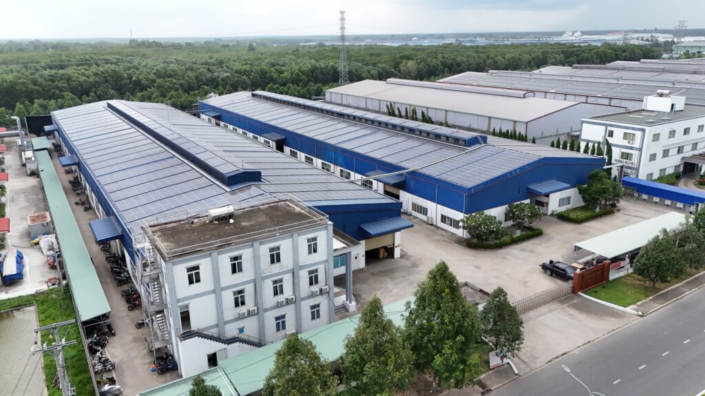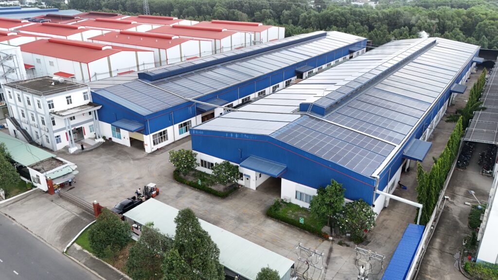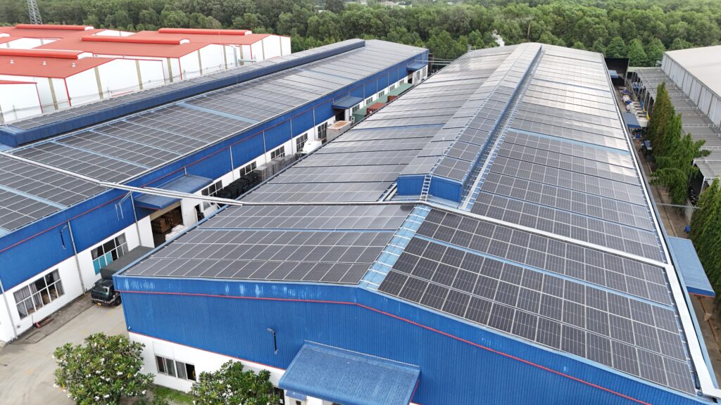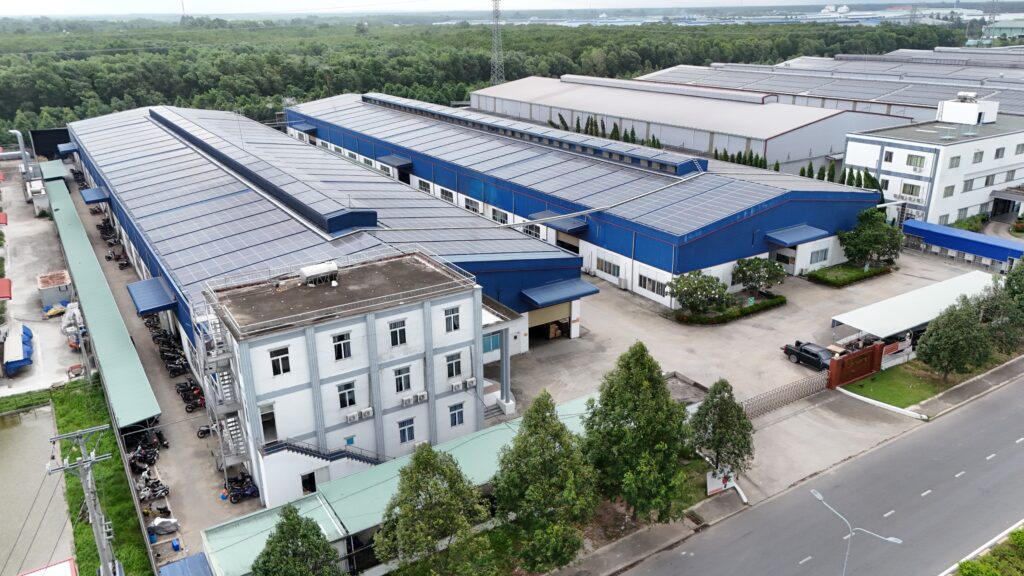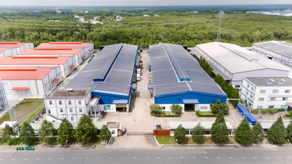 Nâng cao hiệu quả sản xuất và giảm chi phí vận hành với Hệ thống Điện mặt trời Áp mái Công nghiệp. Hình ảnh ấn tượng này cho thấy dự án điện mặt trời quy mô lớn được triển khai trên mái các nhà xưởng, tận dụng tối đa không gian rộng lớn để tạo ra nguồn năng lượng khổng lồ. Việc lắp đặt điện mặt trời giúp các doanh nghiệp công nghiệp giảm đáng kể chi phí điện năng, đặc biệt trong giờ cao điểm, đồng thời thể hiện cam kết mạnh mẽ đối với phát triển bền vững và giảm thiểu dấu chân carbon. Đây là giải pháp đầu tư chiến lược, mang lại lợi ích kinh tế lâu dài và nâng cao hình ảnh “xanh” của thương hiệu trên thị trường. Hãy chuyển đổi sang năng lượng mặt trời ngay hôm nay để tối ưu hóa hoạt động sản xuất và bảo vệ môi trường.